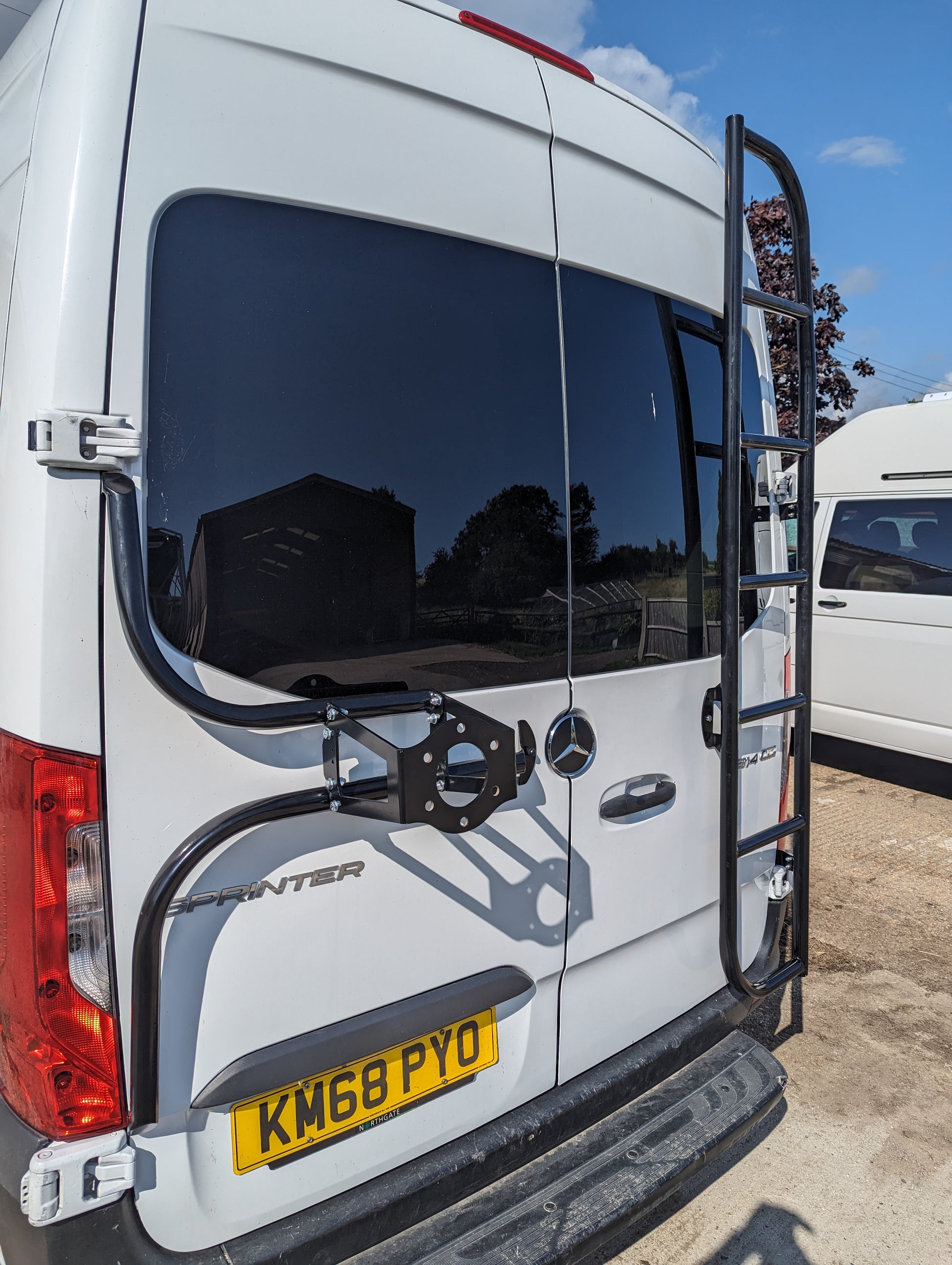 MIG welded light weight mild steel ladder designed to fit Mercedes Sprinter 907 2018 onwards. Supplied unfinished in bare metal for you to finish as you wish. No hinge modifications required to fit this ladder. Made to order in Yorkshire, with a lead time of around 4 weeks.