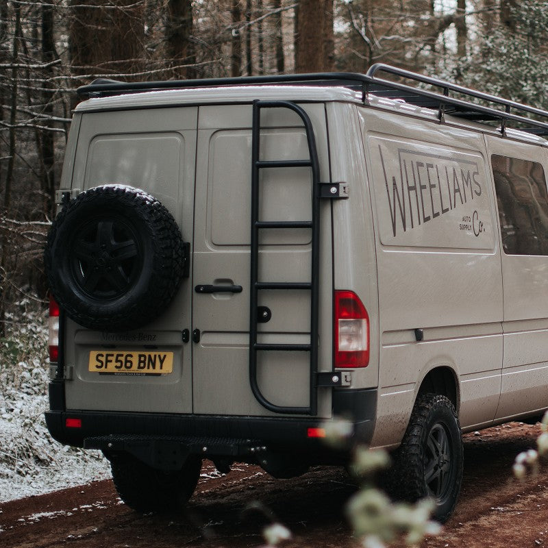 MIG welded mild steel ladder designed to fit Mercedes Sprinter / Volkswagen LT 1996-2006. Designed and manufactured in Yorkshire by the Wheeliams team. Our ladders are made to order, with a lead time of around 4 weeks. Supplied unfinished in bare metal for you to finish as you wish.