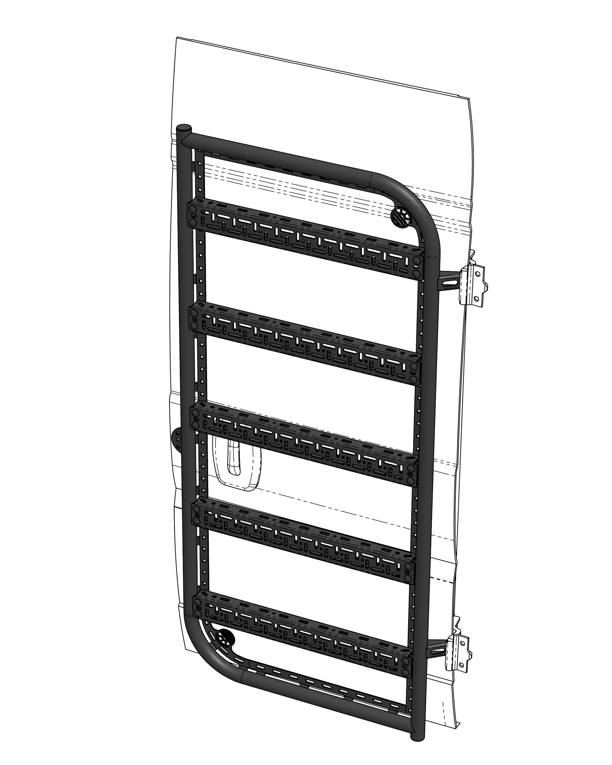 The Backrack is designed to be fitted to all van heights and lengths of the vehicle specified, and can be installed without removing the rear doors. This Backrack model does require some drilling operations as part of the installation process.
