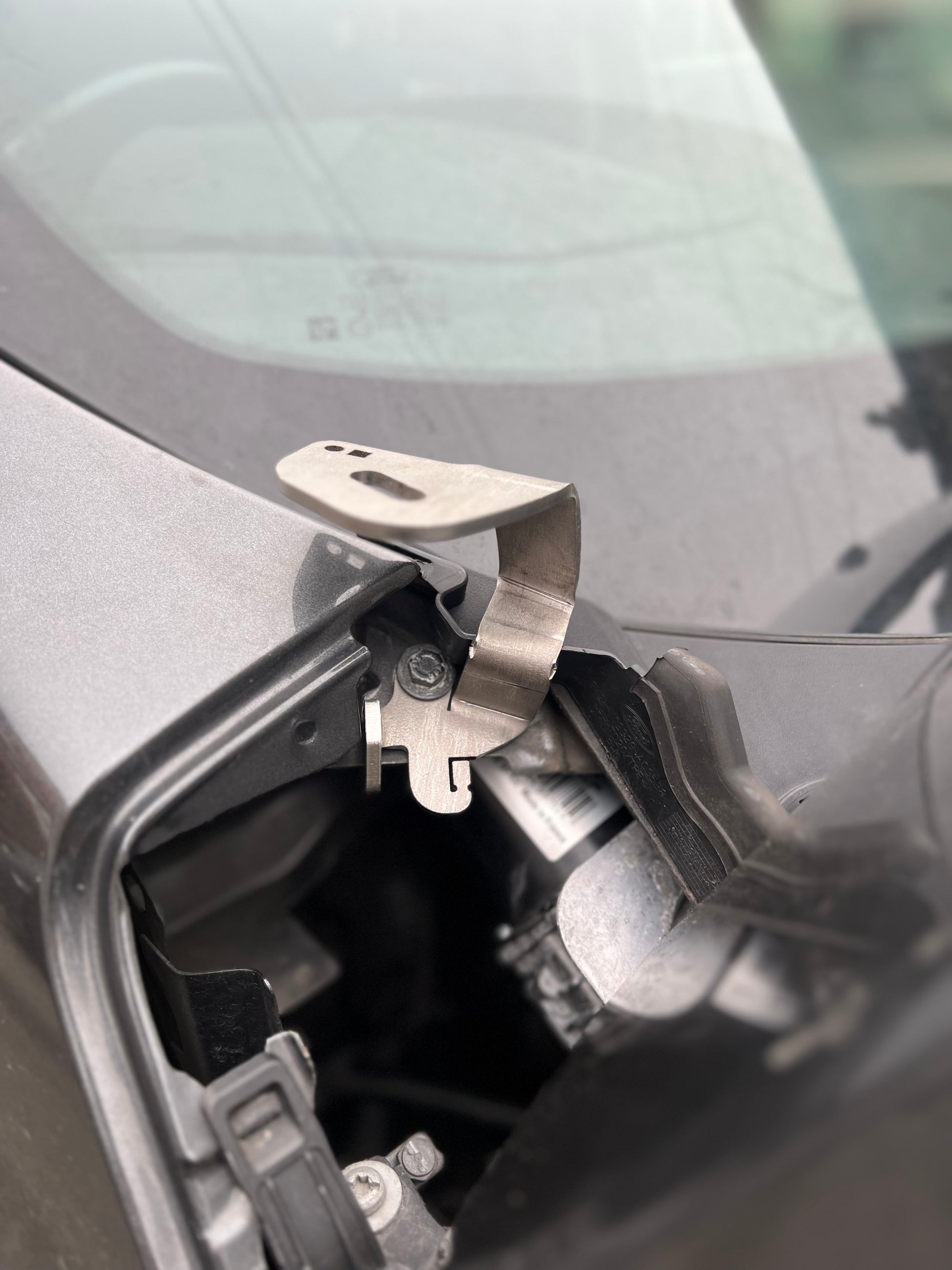 The bracket mounts to the original wing bolt. It hooks under the panel and uses that existing bolt. Can be fitted or removed in minutes. Sold as a handed pair. One for left side. One for right side.