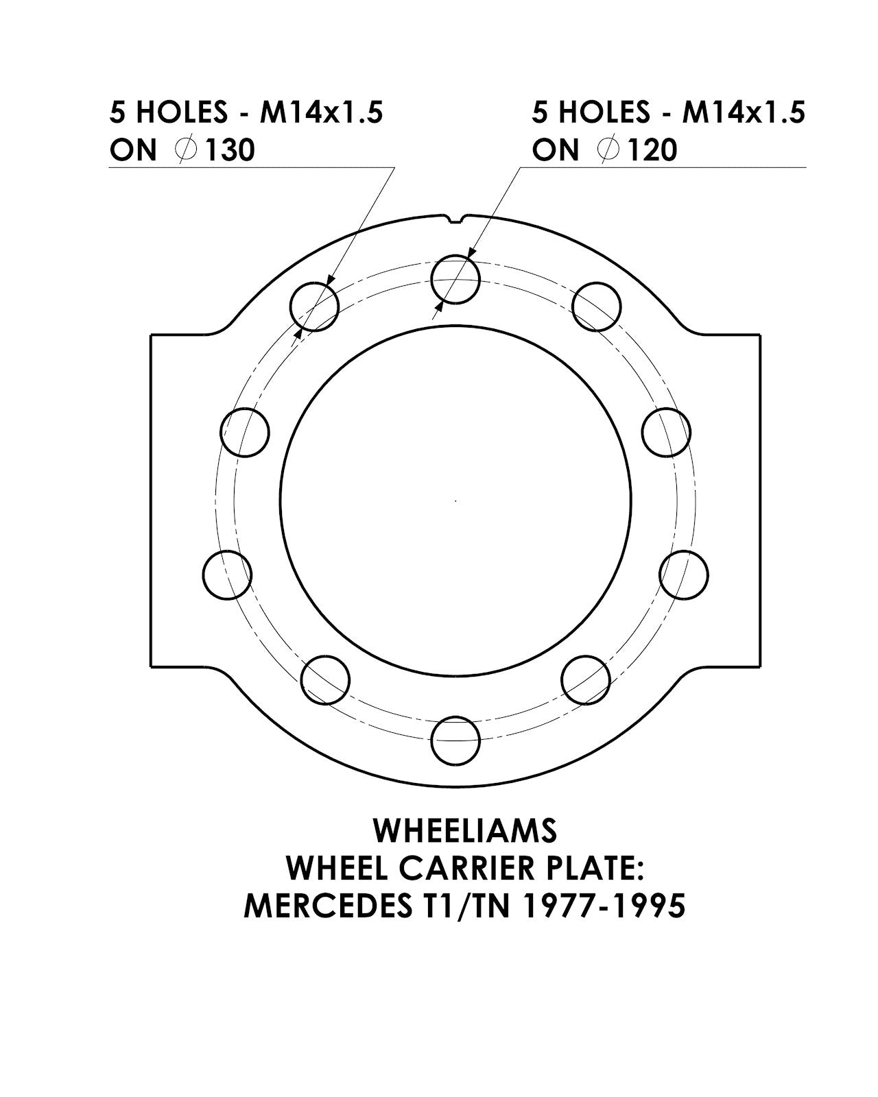 - 5 holes each with an M14x1.5 thread on a 120mm diameter