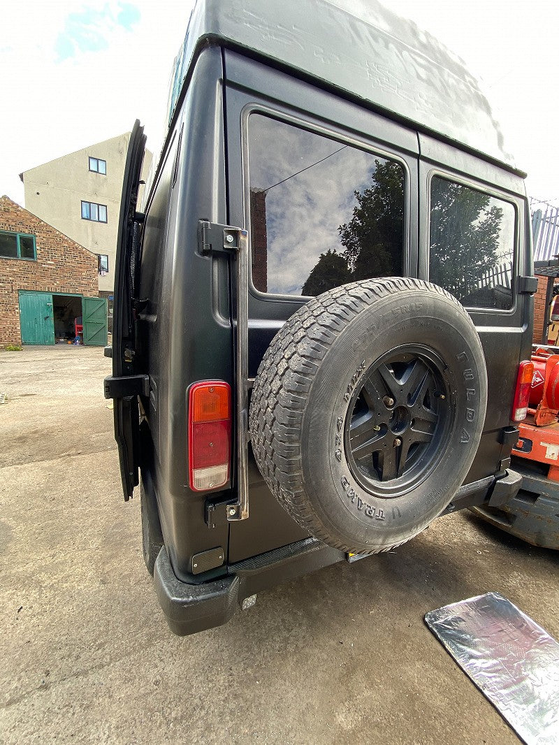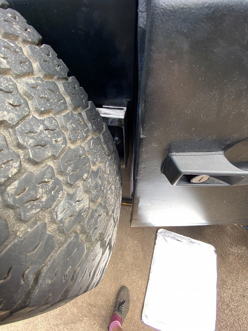 This jig built spare wheel carrier mounts to the back of the door on your Mercedes T1. Please check your hinges are the same as shown in the photos. If they aren’t please get in touch and we will be able to help.