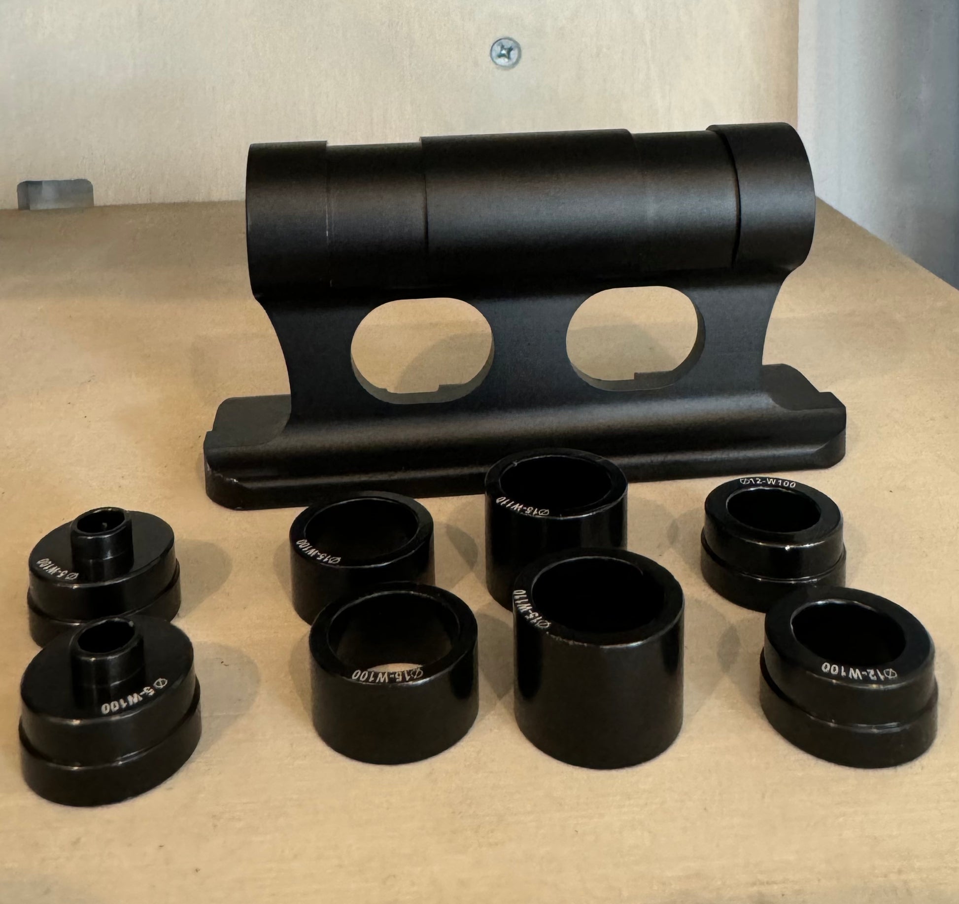 This unique mount comes with x4 interchangable adapters to fit all your mountain bikes AND road bike with one stylish mount! Fitment: 5x100 (quick release/road) 12x100 (thru-axle) 15x100 (Enduro) 15x110 (Boost)