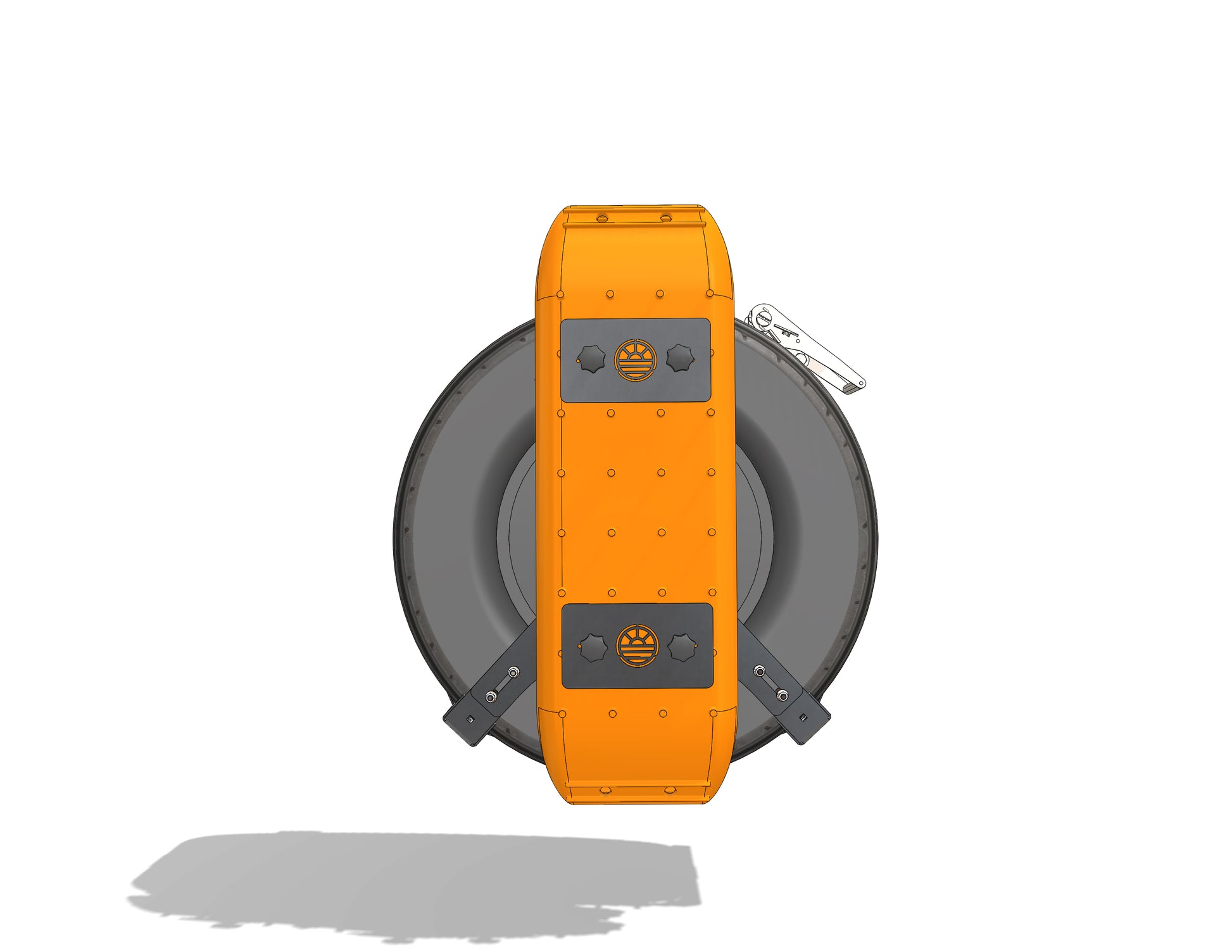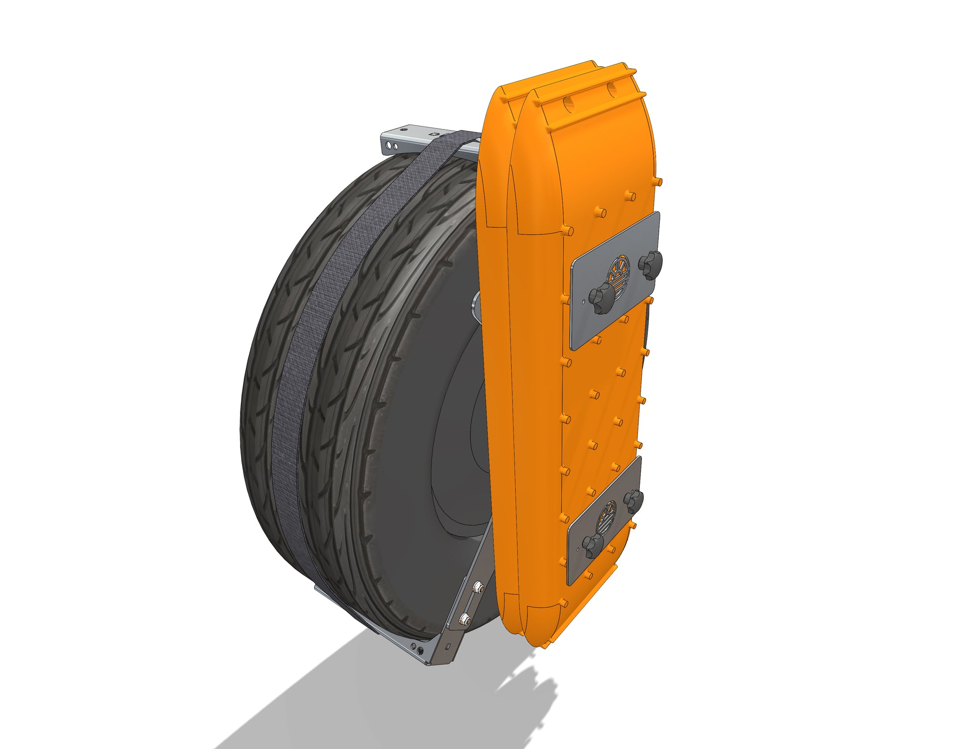 The tyre mounting is adjustable and will fit tyres from 28” (711mm) to 34” (854mm) outside diameter.