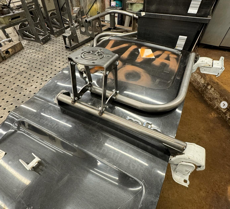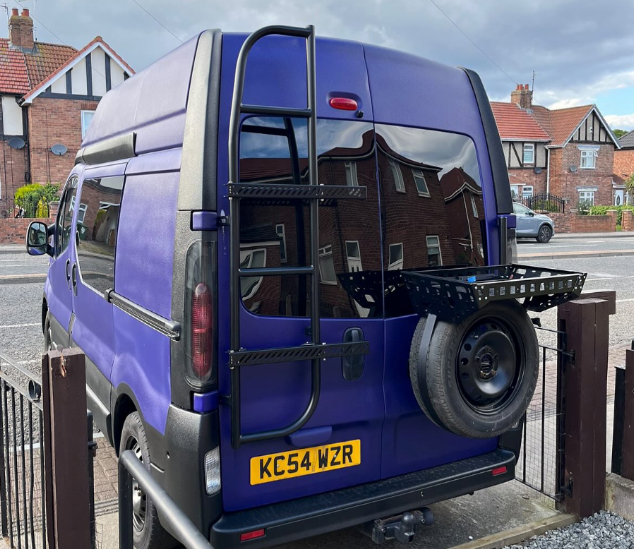 MIG welded mild steel spare wheel carrier designed to fit Vauxhall Vivaro, Renault Traffic & Nissan Primastar. Designed and manufactured in Yorkshire by the Wheeliams team. Our spare wheel carriers are made to order, with a lead time of around 10 days. Supplied unfinished in bare metal for you to finish as you wish.
