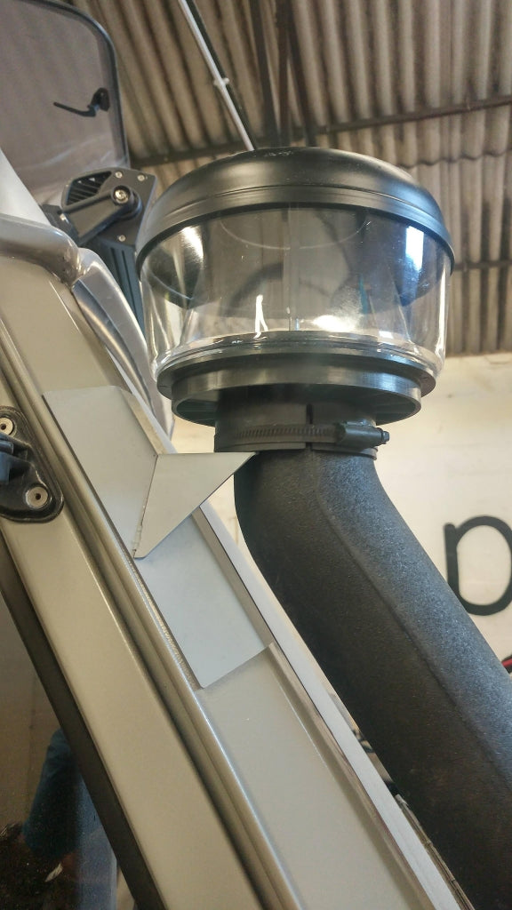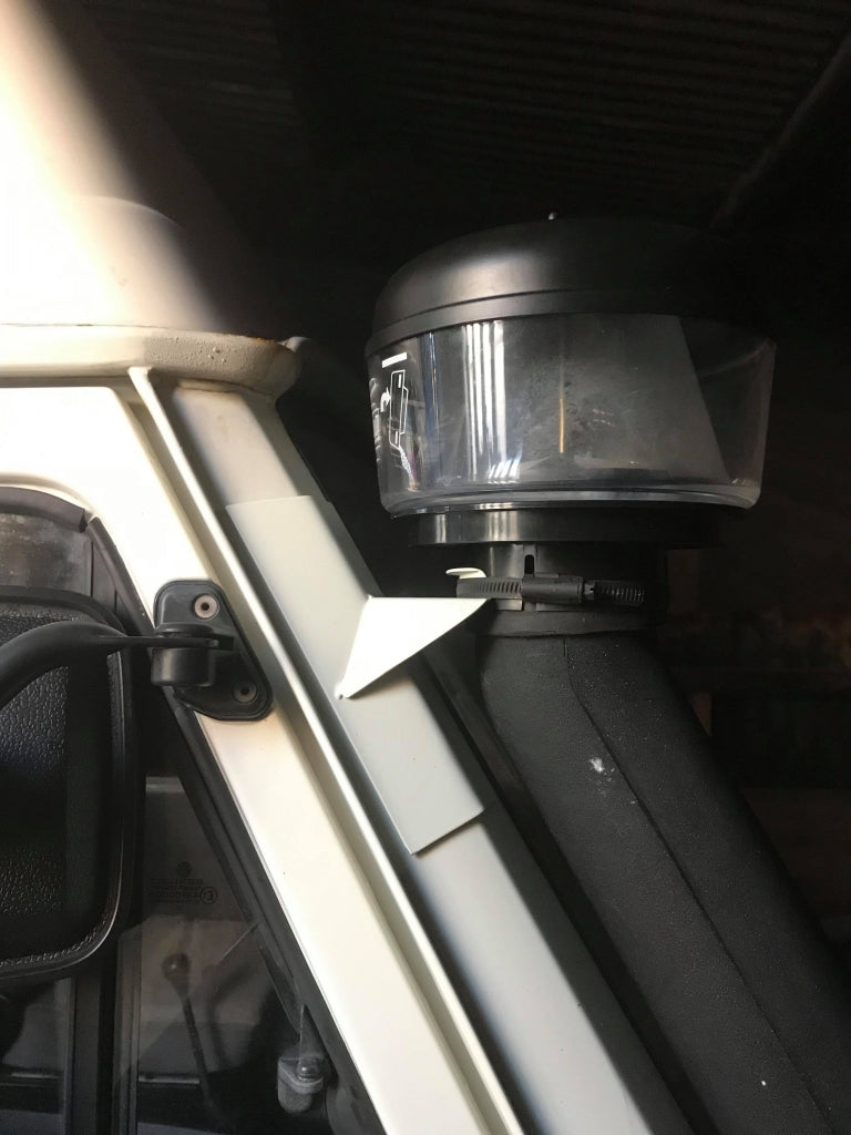Comprising of an HDPE tube (to mount from a hole that you will need to cut in the grill and run up the A pillar), the flexi pipe to run from the existing air duct behind the grill, 2 brackets (one for the grill and one for the A pillar – the former must be drilled but is hidden behind the grill, the latter can be stuck or drilled), a cyclone pre-filter head (not OEM) and 3 jubilee clips (2 silver, one black for the cyclone head). Fits both pre-and post-facelift versions. Post-facelift will need the grill cutting for the lower bracket.