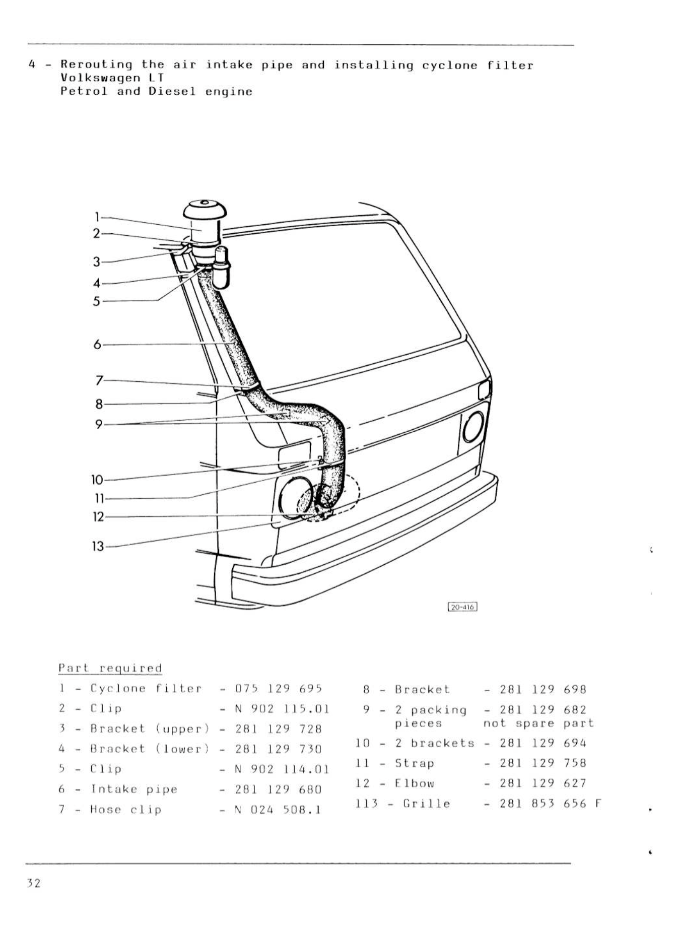 Volkswagen LT MK1 Snorkel Kit 4x4 1:1 reproduction of original