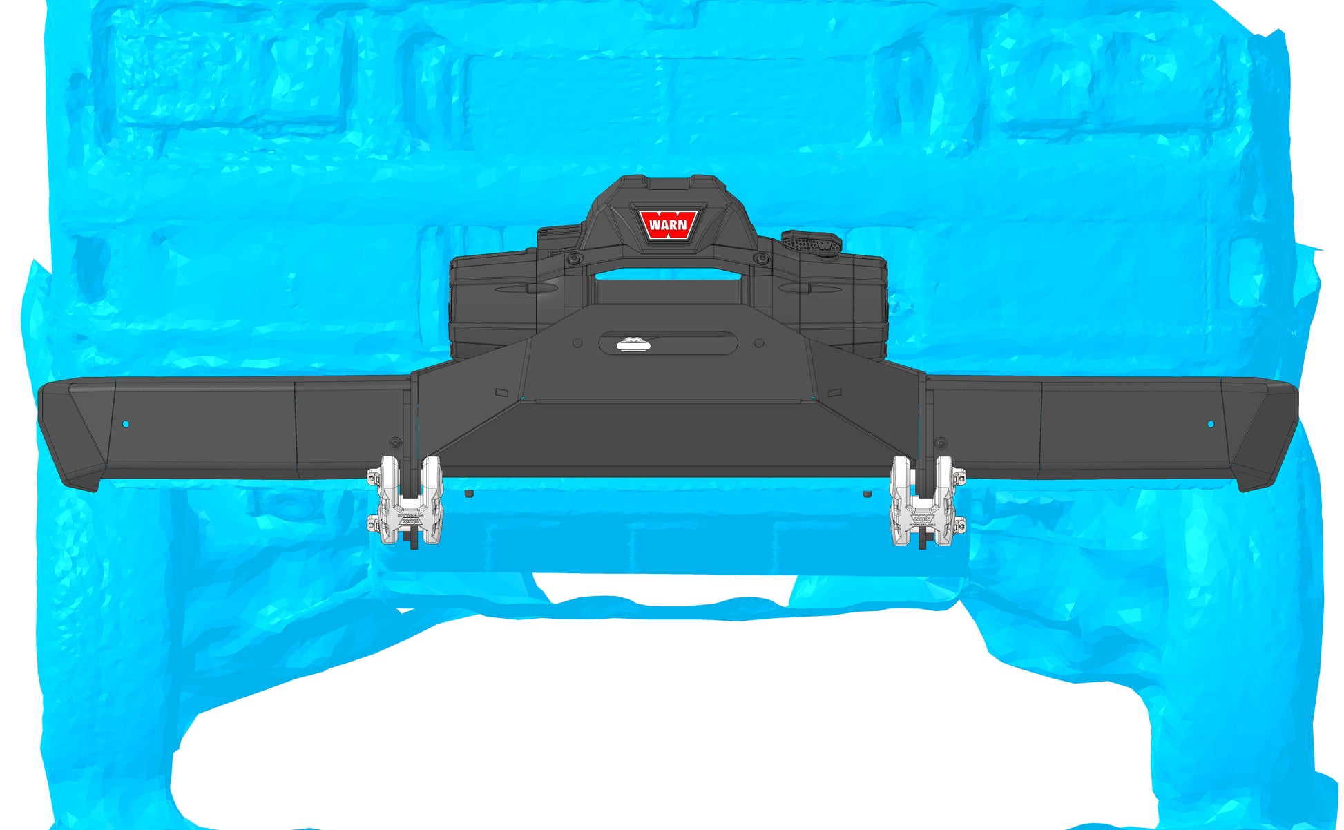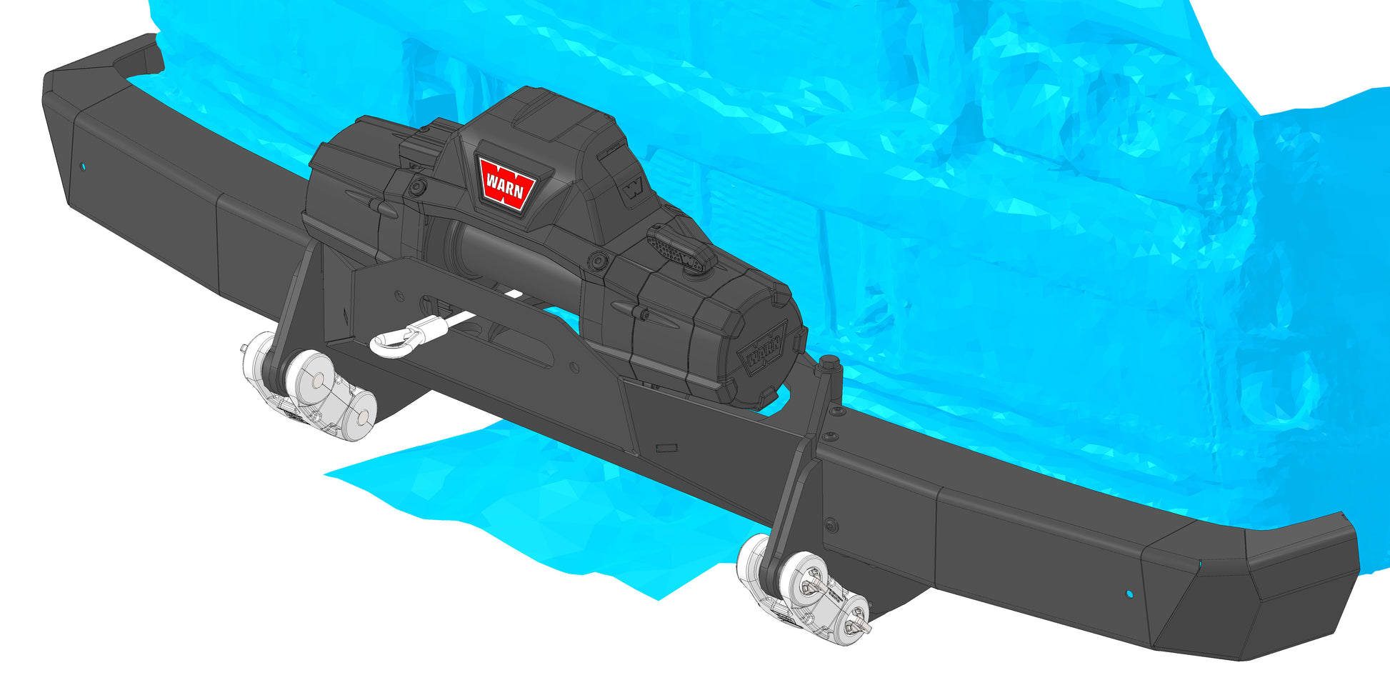 - Central shielded winch mount tied back to the vehicle body structure. Designed to accept the Warn ZEON 10 Winch - 88990 and capable of mounting other similar winches.