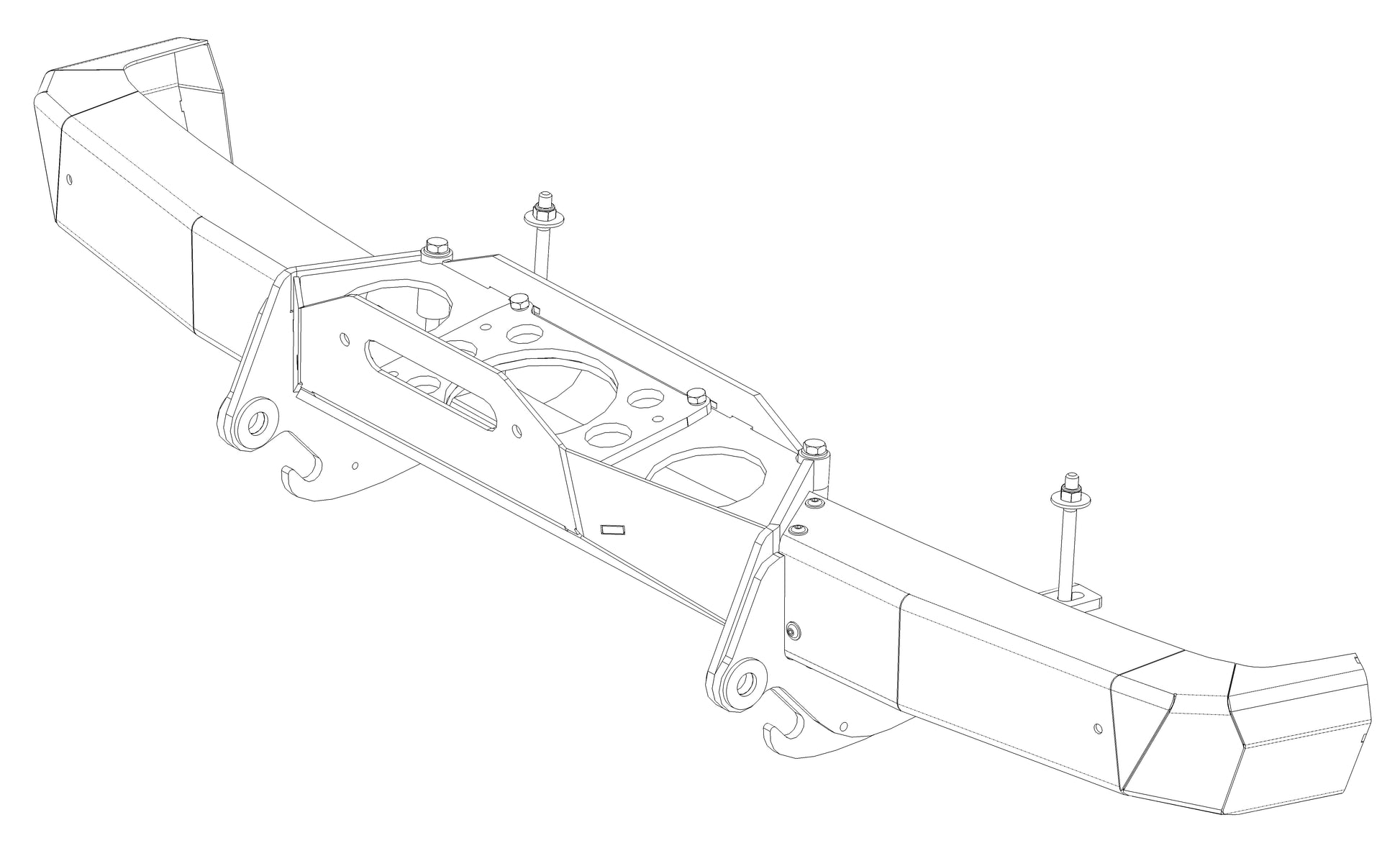 Side bumper sections are bolted to the central winch mount section for ease of assembly and maintenance.