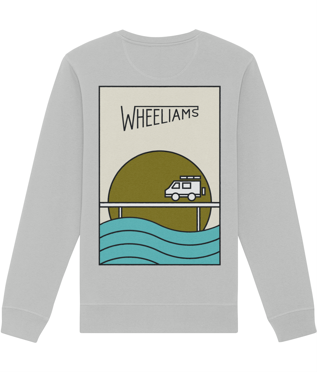 The ultimate adventure-ready sweatshirt. Featuring the Wheeliams logo in black on the front, and our original artwork on the back. Get equipped!