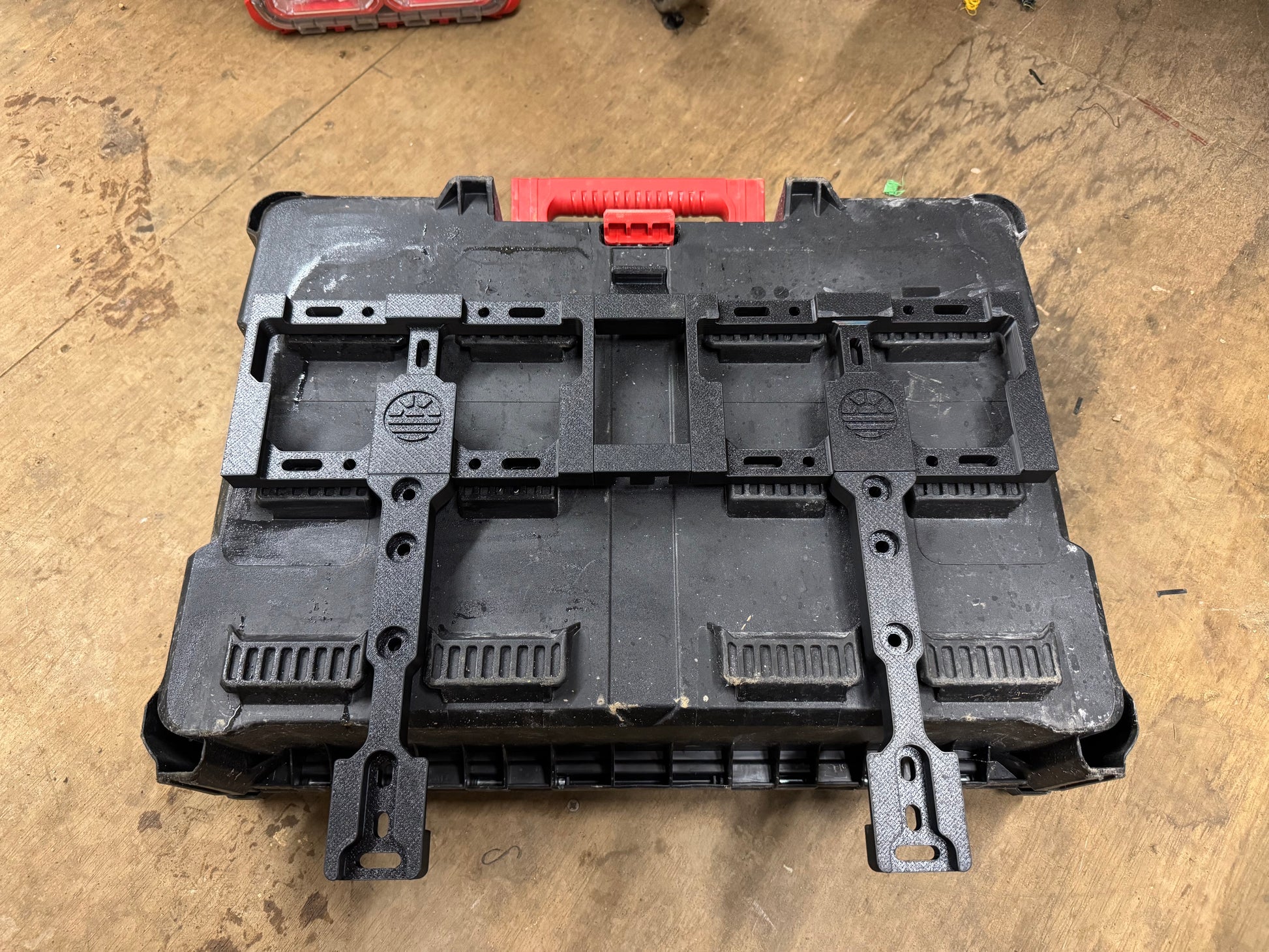 Our Milwaukee Packout™ compatible mounting system will mount either narrow or wide Packout™ boxes.